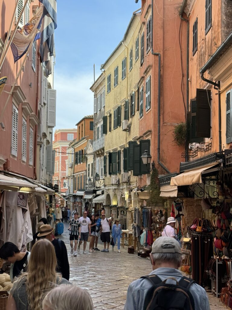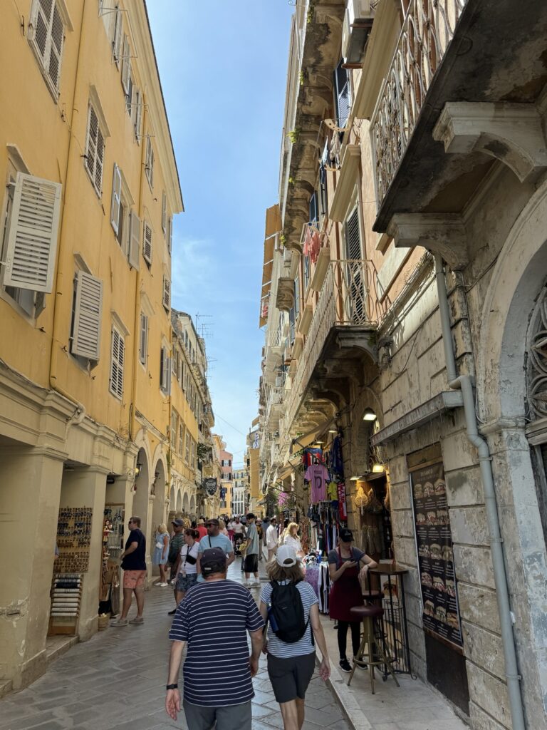 One of the best parts of traveling is discovering small restaurants that capture the feeling of a place. During our time exploring Corfu Town, we stopped for lunch at Aegli Restaurant, a charming spot tucked along one of the narrow pedestrian streets lined with cafés and shops.
