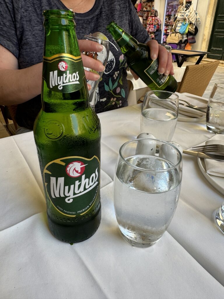 We paired it with Mythos beer, one of the most recognizable Greek beers and the perfect refreshment for a warm afternoon in Corfu.