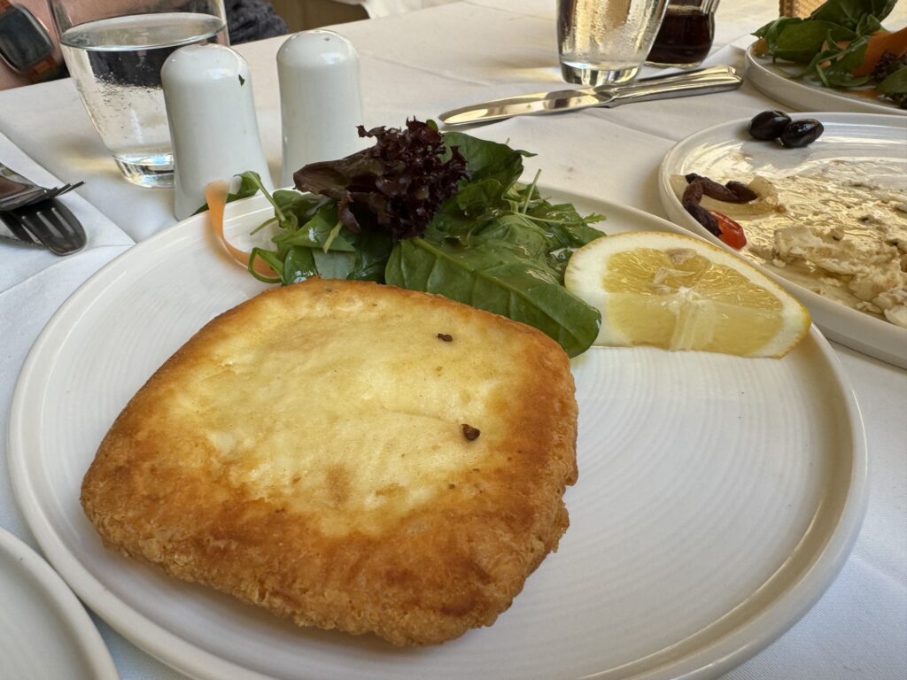 Another dish was Saganaki from kefalotyri cheese, a fried Greek cheese that arrives at the table golden and crispy on the outside while warm and soft inside. A squeeze of lemon over the top brings everything together and adds the perfect balance.