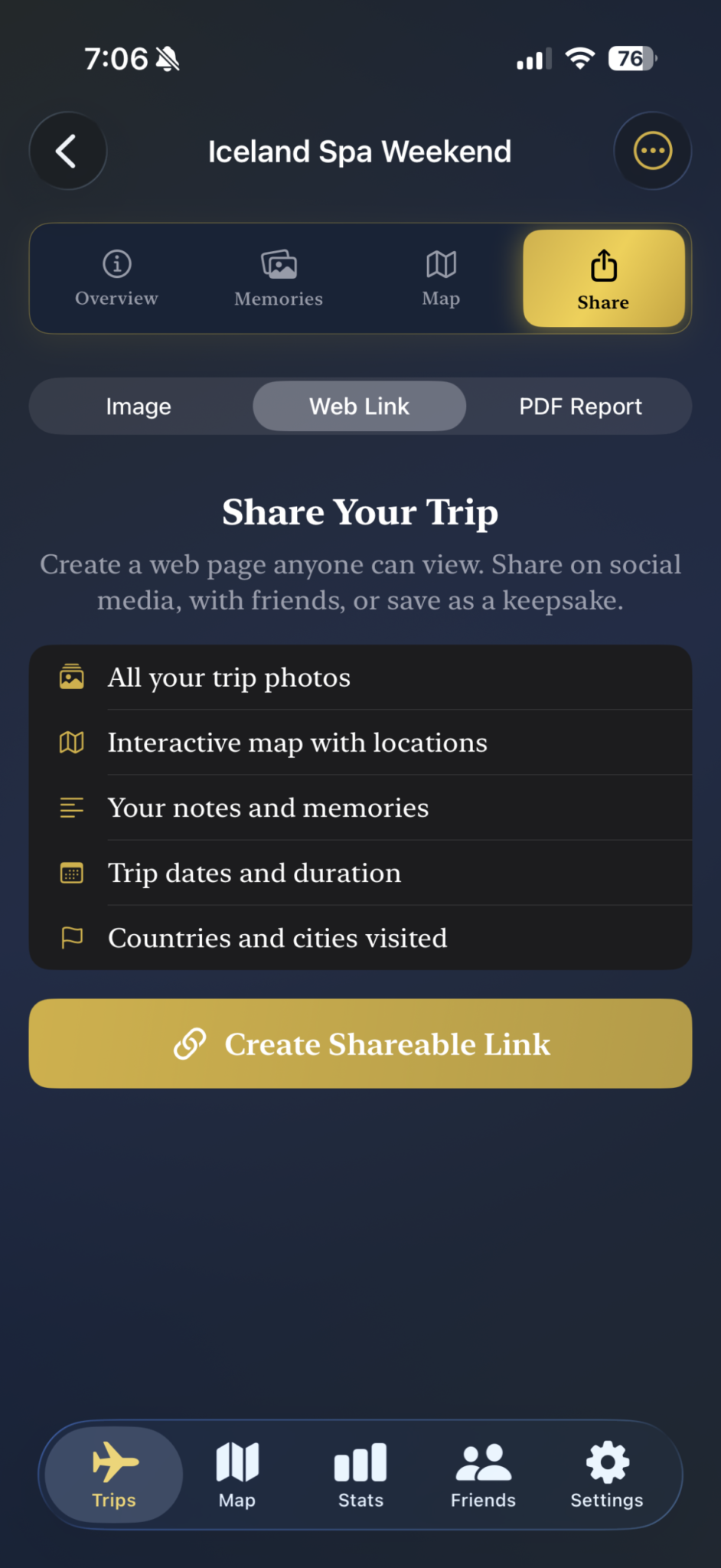 • Unlimited photos per trip. The free tier caps you at 50. Lifetime removes that completely.