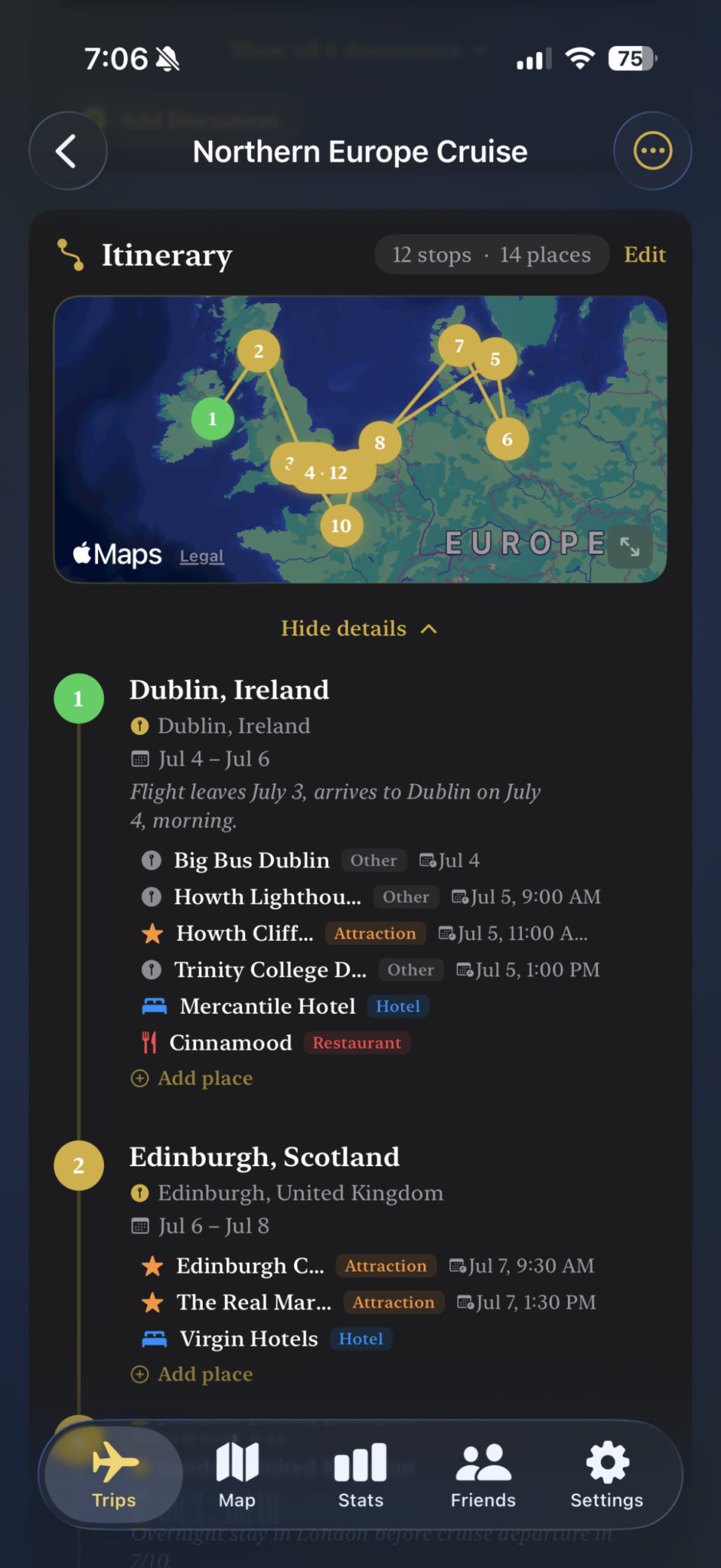 • A visual travel timeline. Scroll through your trips chronologically, like a personal travel diary that actually exists.