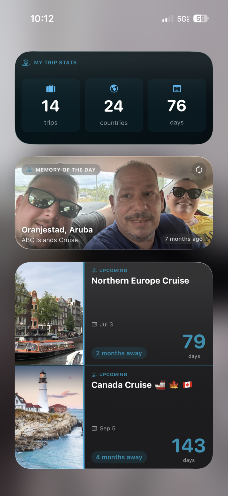 • Automatic trip detection. The app figures out your trips from your photo history, grouping images by destination and date.