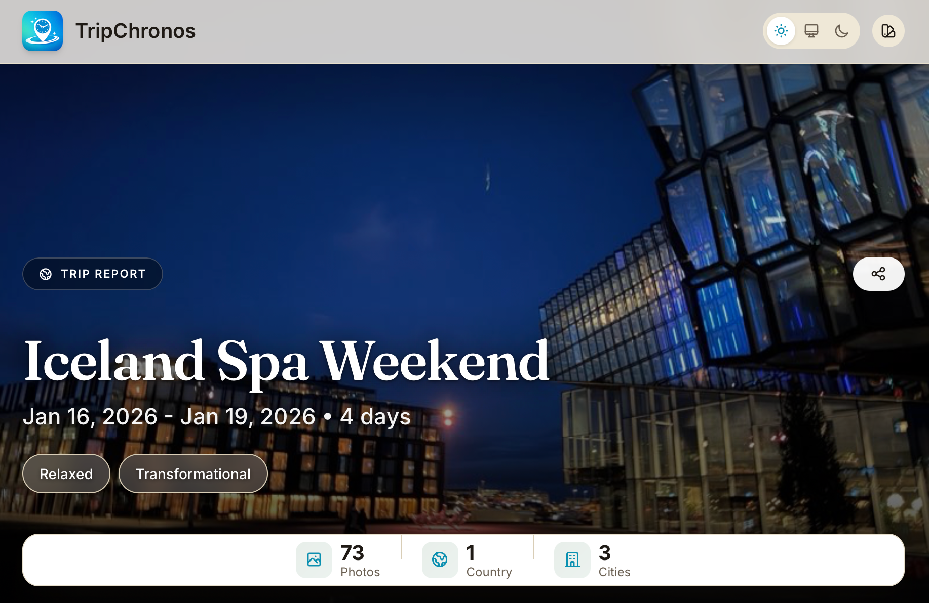I’m a developer, and at some point I just got tired of complaining about the problem. TripChronos started as something I made for myself. Before long, trips were starting to blur together and I needed a better way to hold onto them.