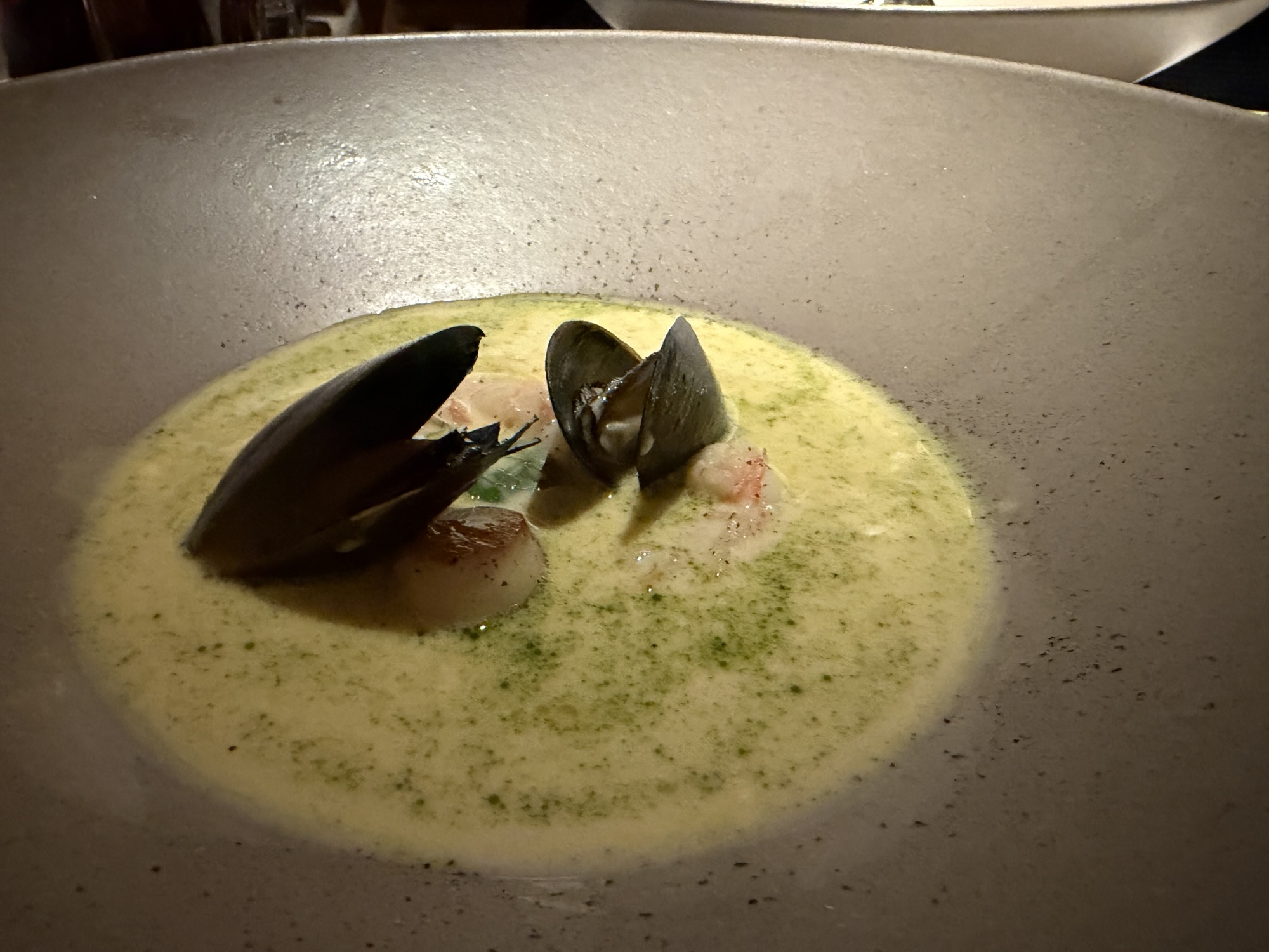 - creamy fisherman’s soup with langoustine, scallops, and mussels