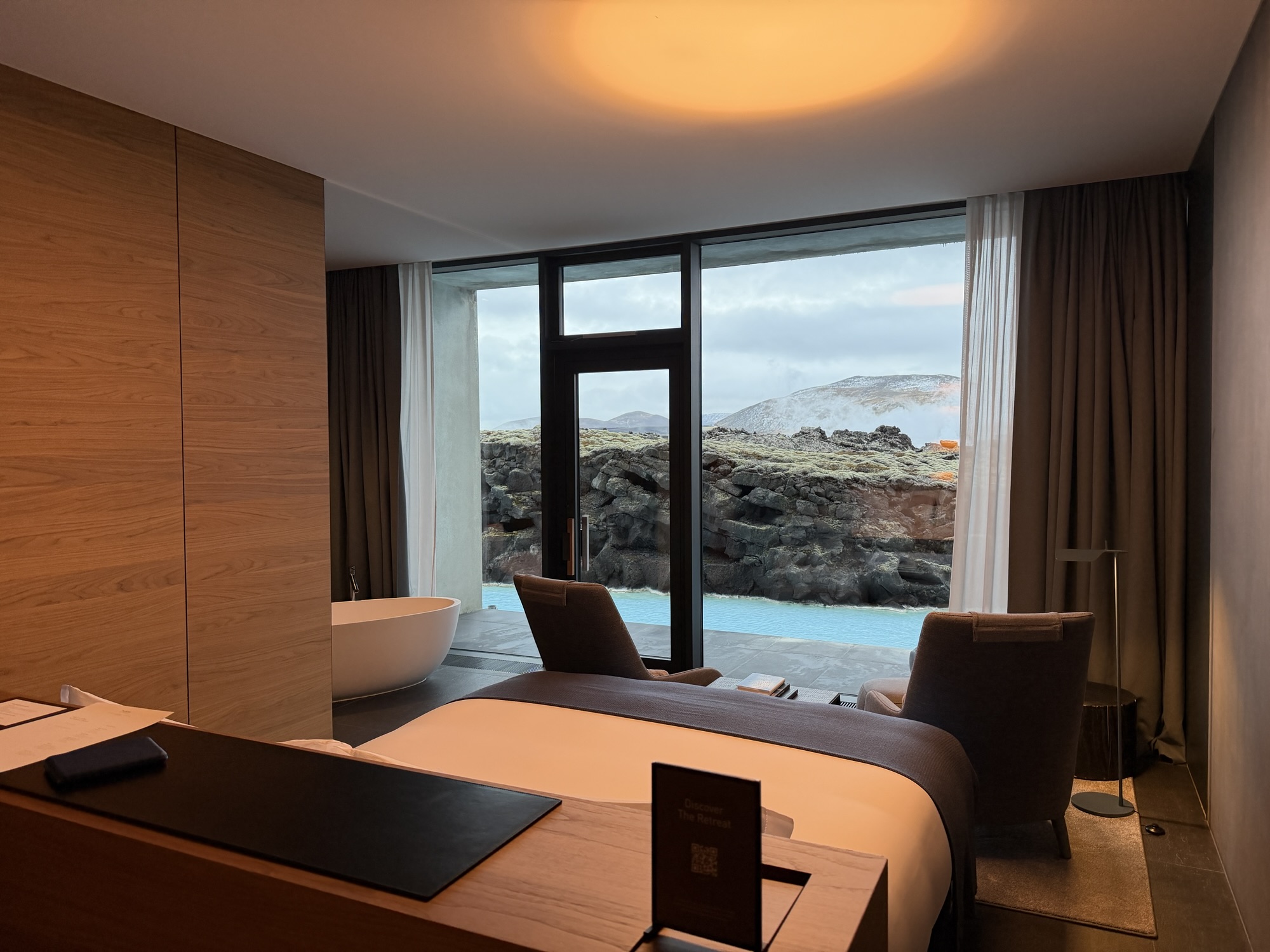 There were moments where we stood on the terrace overlooking the lava fields and the water felt almost perfectly still.